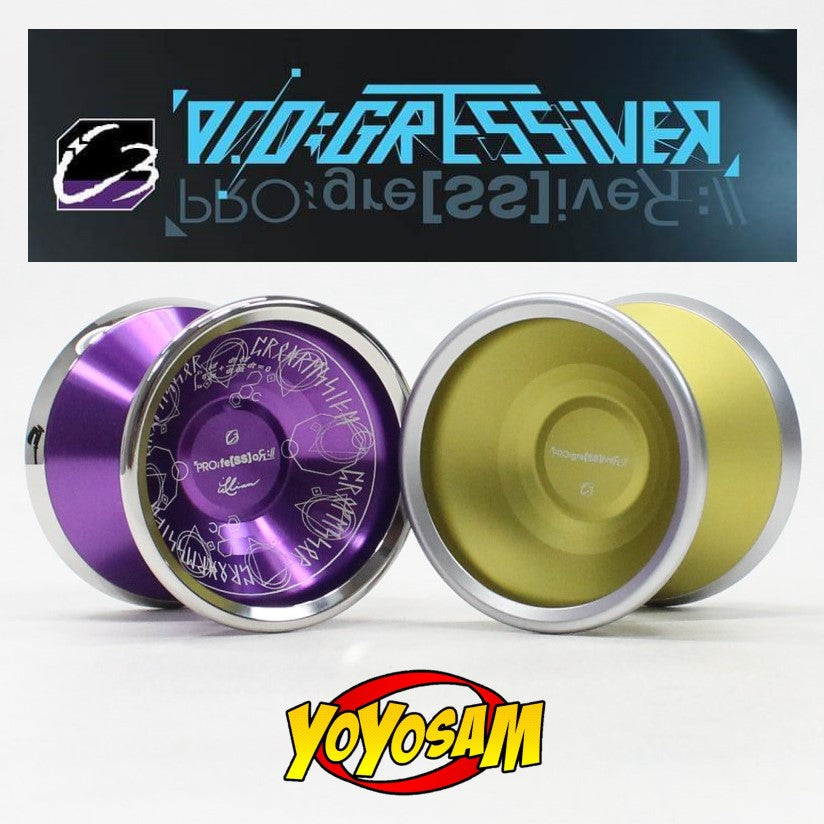 C3yoyodesign's latest high-end model is the Pro:gre[SS]iveЯ. High performance contest level bimetal at 63.6g available for speedy style playing. It features bold SS rim for stable control and powerful spinning..