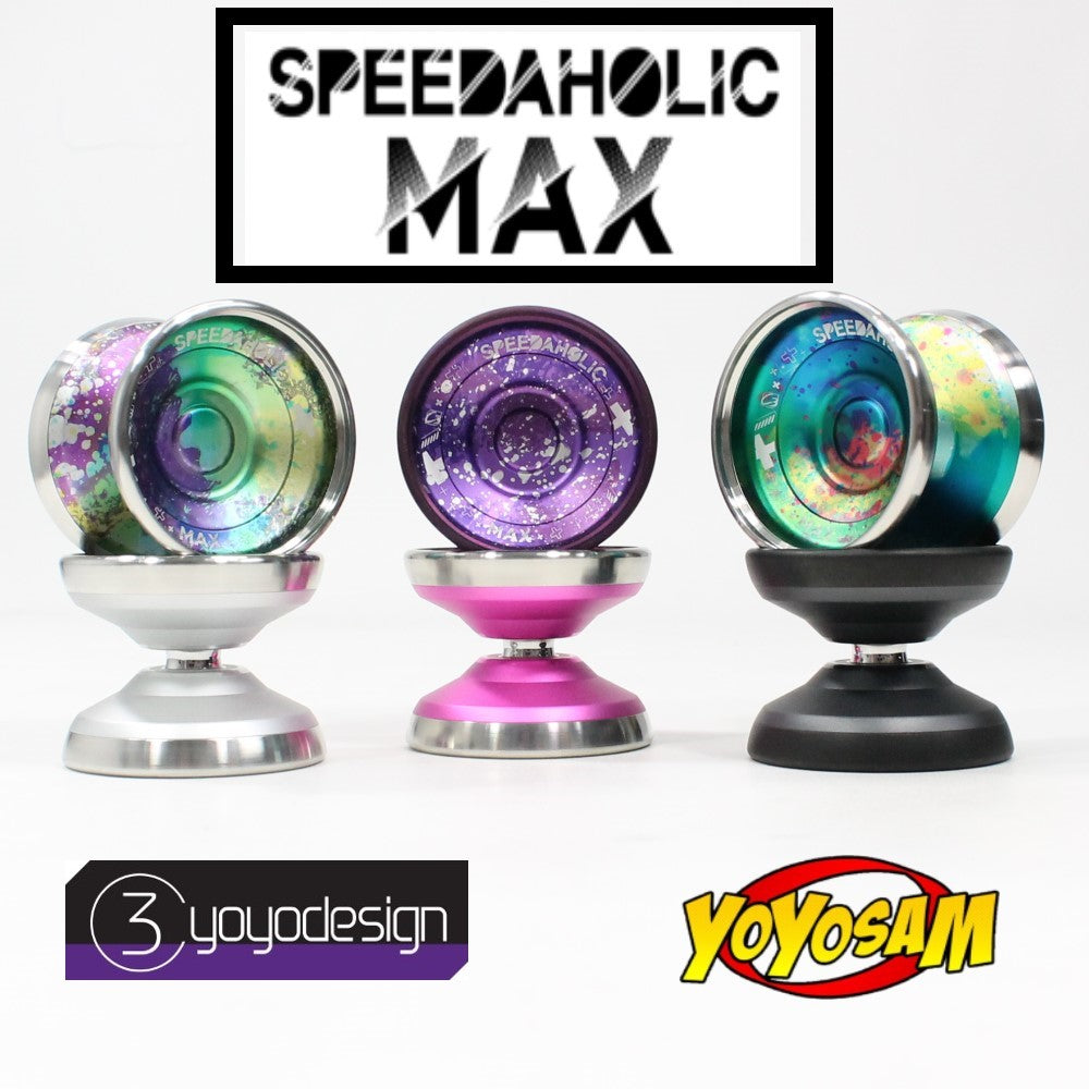 "SPEEDAHOLIC MAX" is a flagship model in the "SPEEDAHOLIC" series. A familiar shaped yoyo in a high performance, bimetal design, suitable for players of all styles.