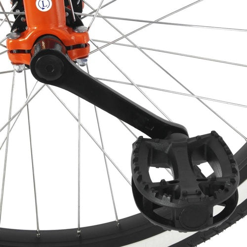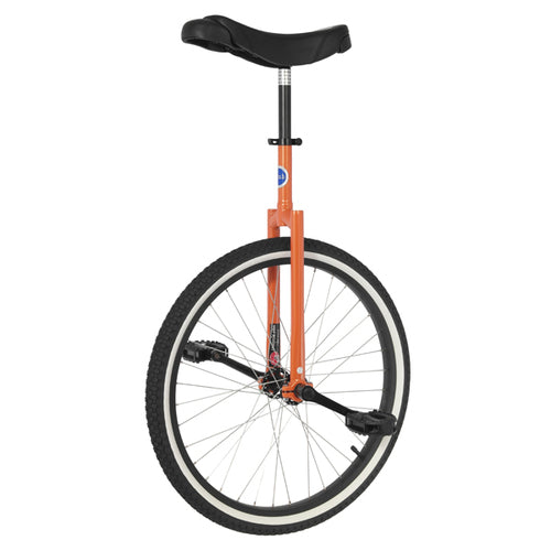 Features: Saddle: Club saddle (black with a design on the top of the saddle) Seat post: Club 25.4mm x 300mm chromed steel or aluminum with a welded rectangular mounting bracket, 4 hole Seat post clamp: Nimbus (black) quick release, aluminum Frame: Nimbus II 24" (orange) steel with 40mm stamped maincap bearing housings Hub/axle: UDC cotterless (black) 36H, hardened splindle,100 mm center bearing to center bearing Spokes: 14G. stainless chrome (236mm in length for 3X) with silver nipples Rim: Club 24" (black) 36H, singlewall, aluminum Rim strip: Rubber Tube size: 24" x 1.95 - 2.125" Tire: Kenda Kikzumbut (whitewall) 24" x 1.95" Crank arms: United (chrome) 127mm, cotterless, steel Pedals: United, 9/16" threads, plastic Bearings: 17mm x 40mm Approx. cycle weight: 13 lbs.