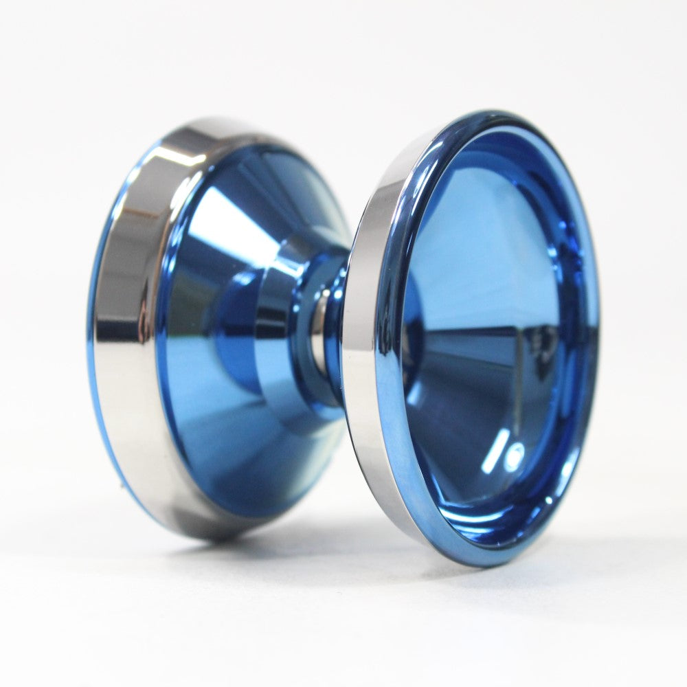 This is a bimetal yo-yo by iYoYo based on their iCEBERG. Unlike the TiTANiC, which was based on the iCEBERG Classic, this model is based on the second generation of the Iceberg, which is a whole 46mm wide, and also has a stainless steel rim. This configuration is the company's second since the TiSSOX.