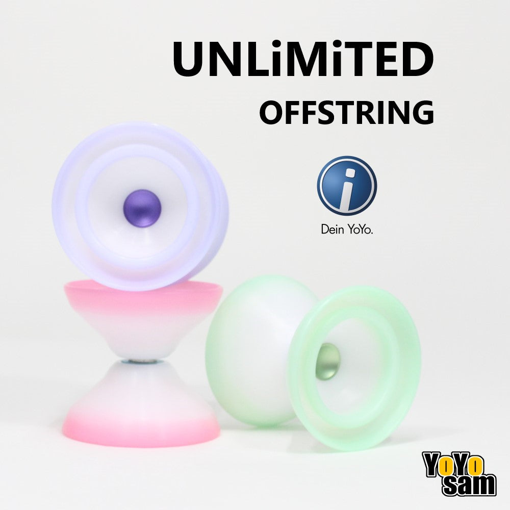 Ryan tested over 100 models over the years and approached iYoYo with what he feels was the perfect Offstring yoyo for the current play style, introducing the UNLiMiTED Off String. It follows the shape of iYoYo's first offstring, the AiR DiVE but has a smaller diameter and wider in keeping with modern trends. The large bump area and double rim construction helps maintain a solid sense of stability during long sleeps, supporting the off string style.
