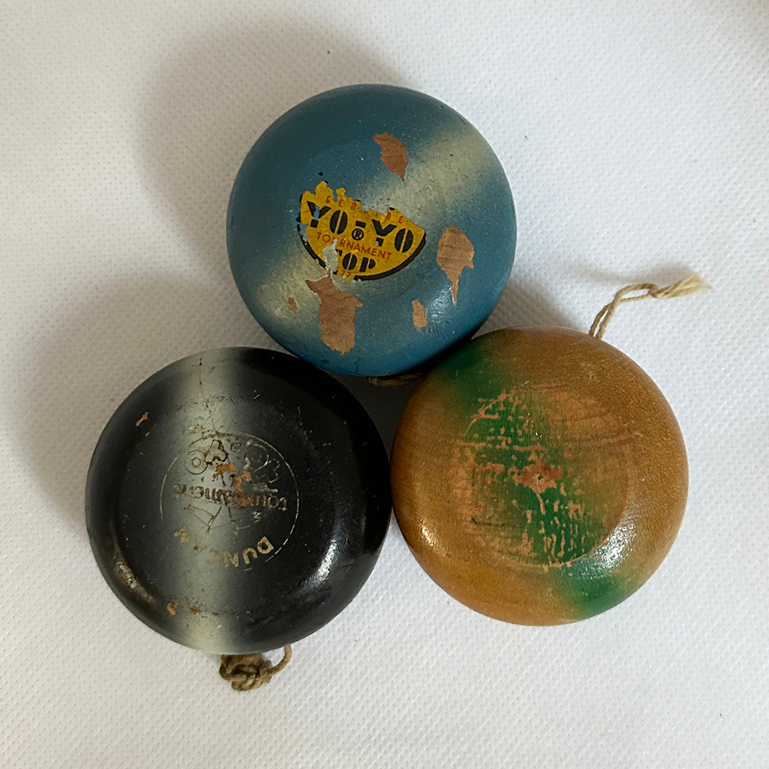 If you're looking for three old and beat up wooden Duncan yo-yos, all Tournament Yo-Yos, but from different times, this may be for you.