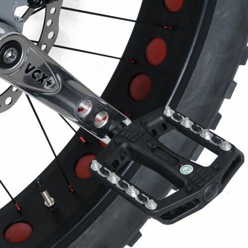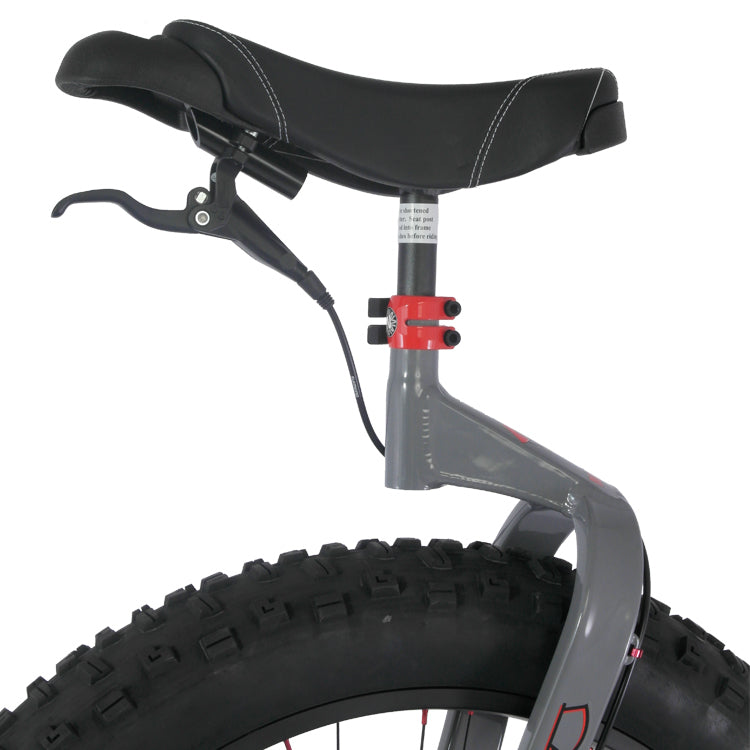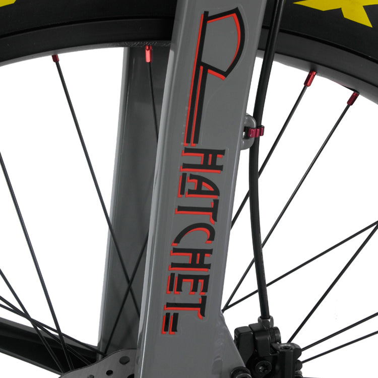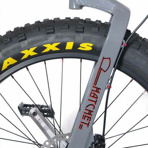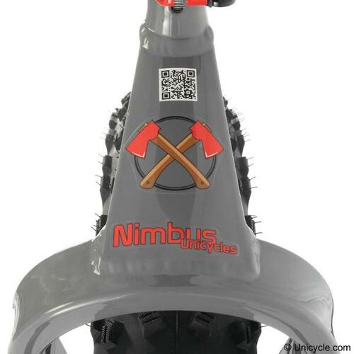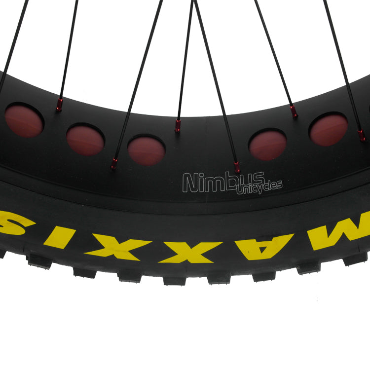 The Nimbus Hatchet builds on the amazing platform that the Oregon created, and moves it onto the next level. The frame comes with the brake installed on a new precision IS mount. The hose is also clipped in place with special red aluminium clips. The main challenge with "Fat-Uni's" is the requirement for a super wide frame. This can make it uncomfortable to ride as it catches the riders' legs. To resolve this the Nimbus Hatchet moves the frame behind the riders legs giving maximum clearance. This also means you can run some of the largest tires on the market, which includes the Snowshoe 5.05" tire.