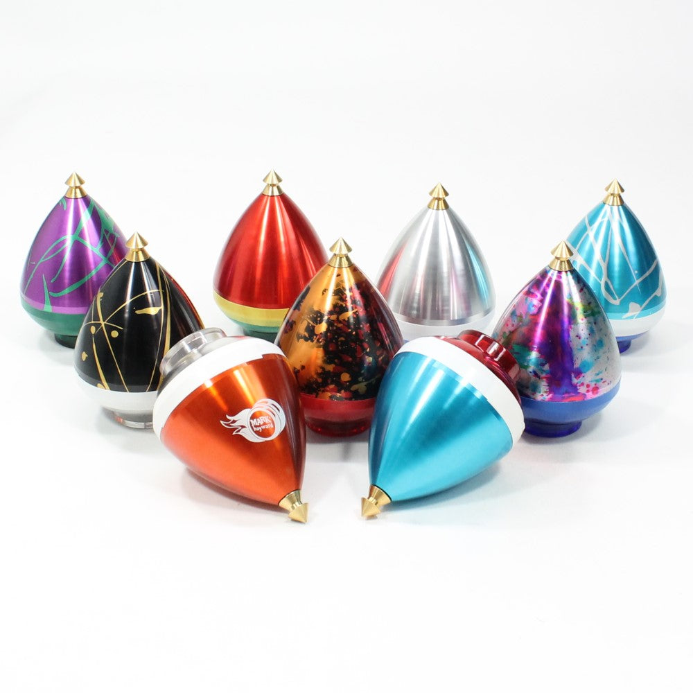 The Quicksilver Spin Top from Spintastics is a beautifully crafted top featuring a plastic/metal hybrid construction. The shape comes from the already popular plastic Trompo, giving it a nice large size for maximum spin time and maneuverability. It was designed with a Plastic Crown and a machined aluminum body which gives it an amazing weight distribution and added durability.