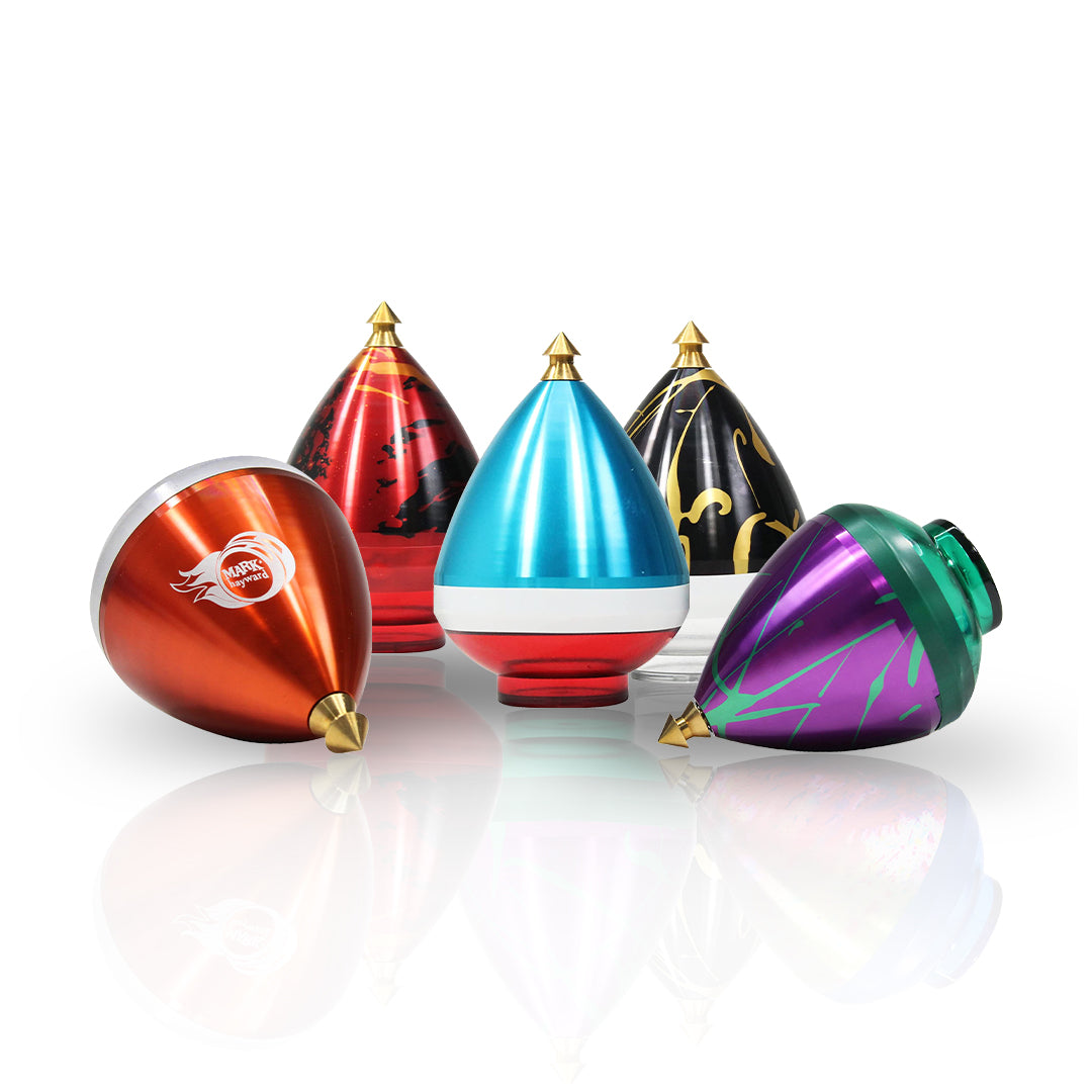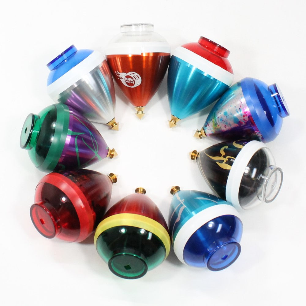 Quite simple the best spin top on the market. looks great and plays great. Designed by the master himself Dale Oliver. Plastic cap for better weight distribution. This is Spintastics longest spinning top. Treaded brass point with 2 precision ball-bearings. Includes string. For the experienced top spinner.