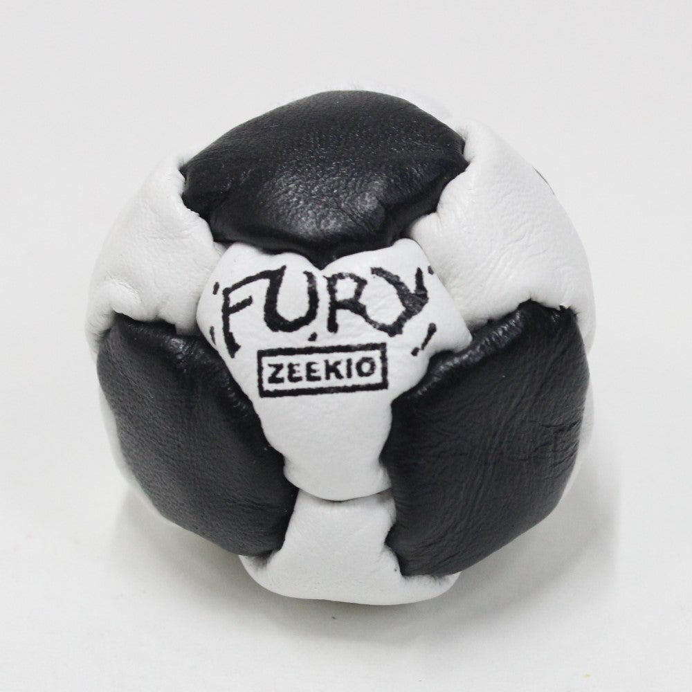 The FURY by Zeekio is a handcrafted 14 panel Footbag made from genuine leather and sand filled. It is hand stitched and very sticky for that extra edge of control.