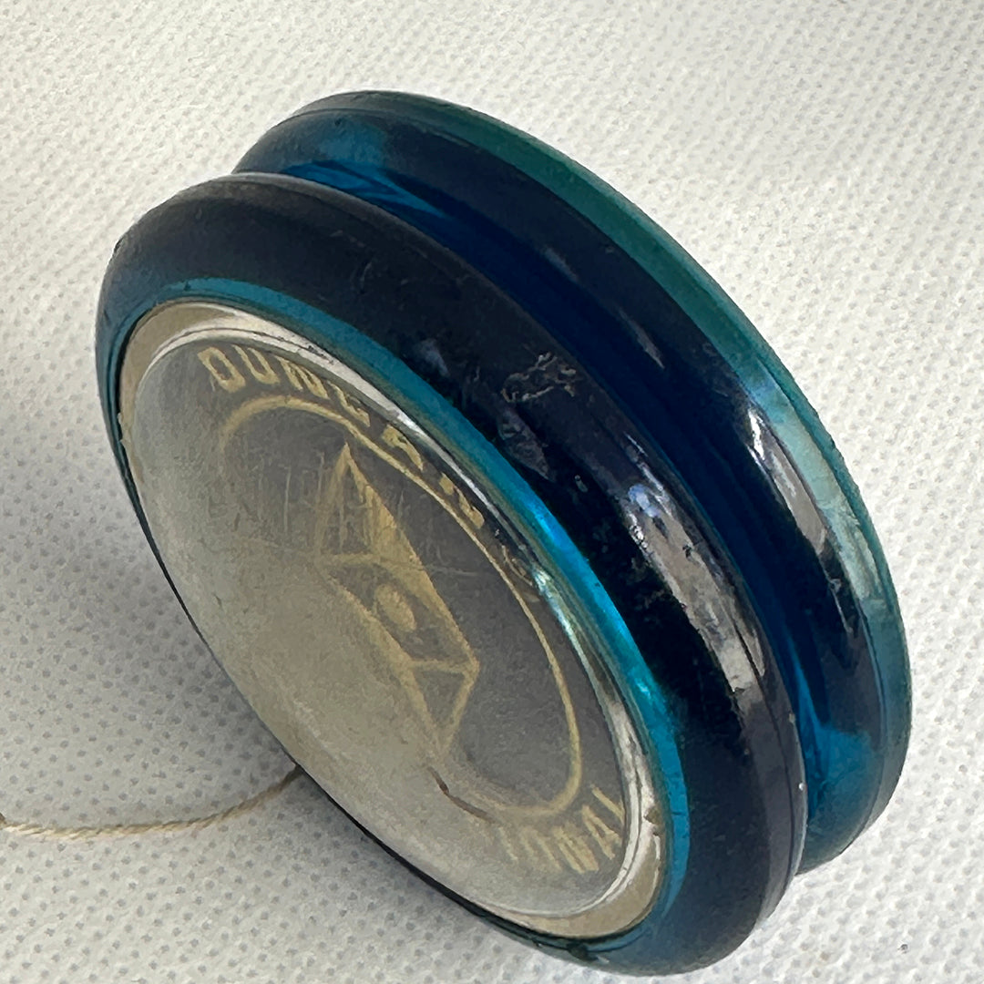 This vintage Diamond Professional Duncan is blue plastic with a gold foil insert seal, slimline shape and view lens. These were produced in the mid 1970's to early 1980's.