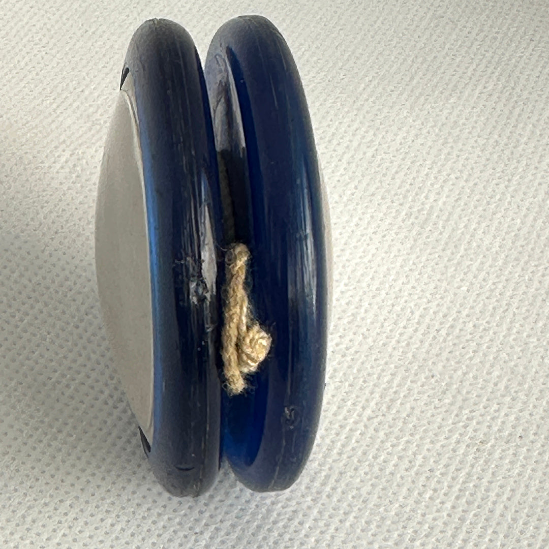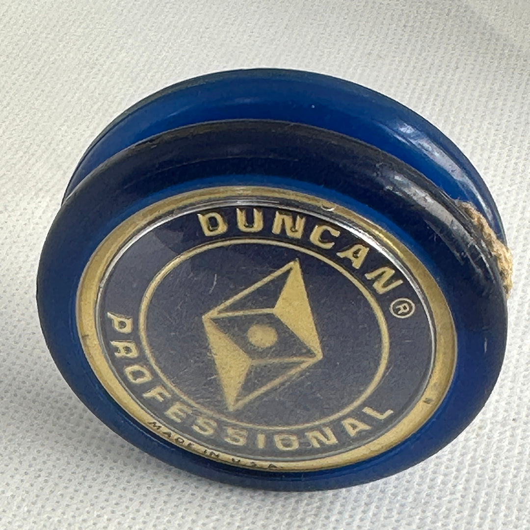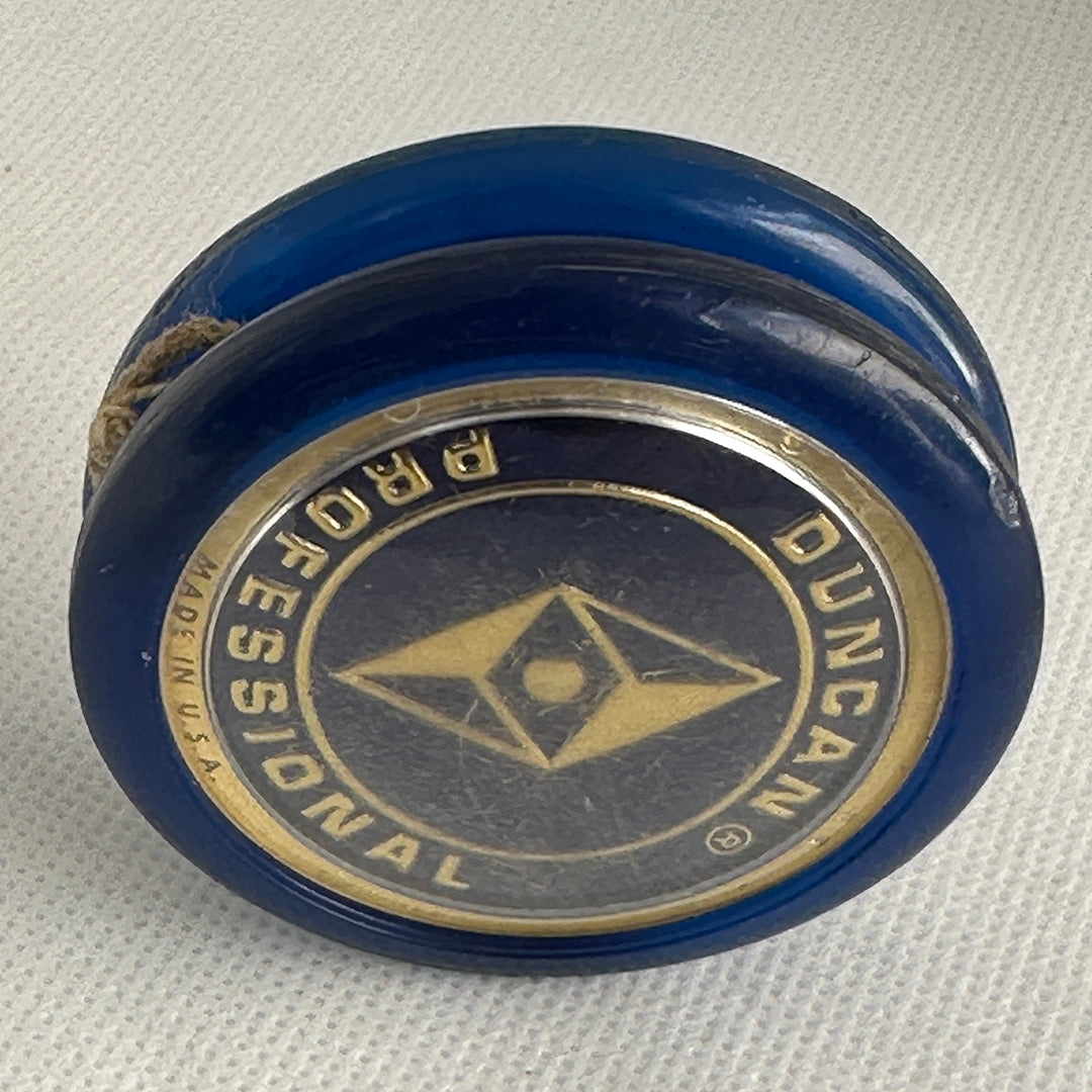 This vintage Diamond Professional Duncan is blue plastic with a gold foil insert seal, slimline shape and view lens. These were produced in the mid 1970's to early 1980's.