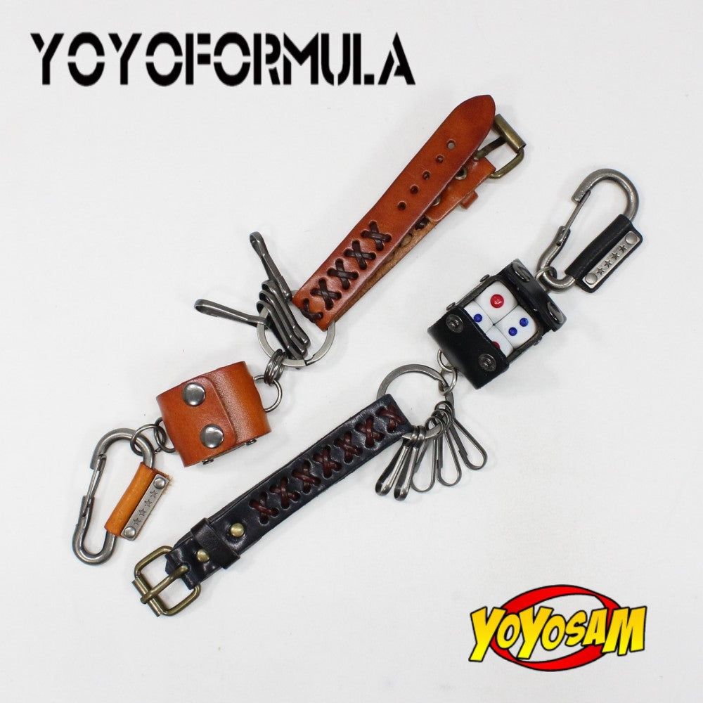 YoYo holder made of genuine leather. It features a luxurious construction with a large number of extras. It includes a sturdy belt clip, extra hooks and a leather box shaped accessory case.