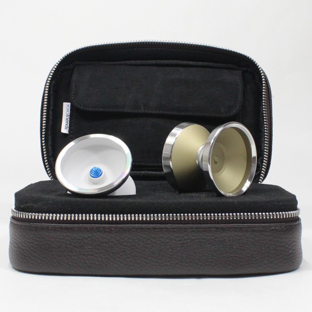 The first production run includes a prototype magnesium/stainless steel rim model with side effects in a Genuine leather bag. Note: The MgSS with side effect bonus yoyo, was prioritized the quality of the surface first. There is no guarantee of the quality, vibe nor performance.