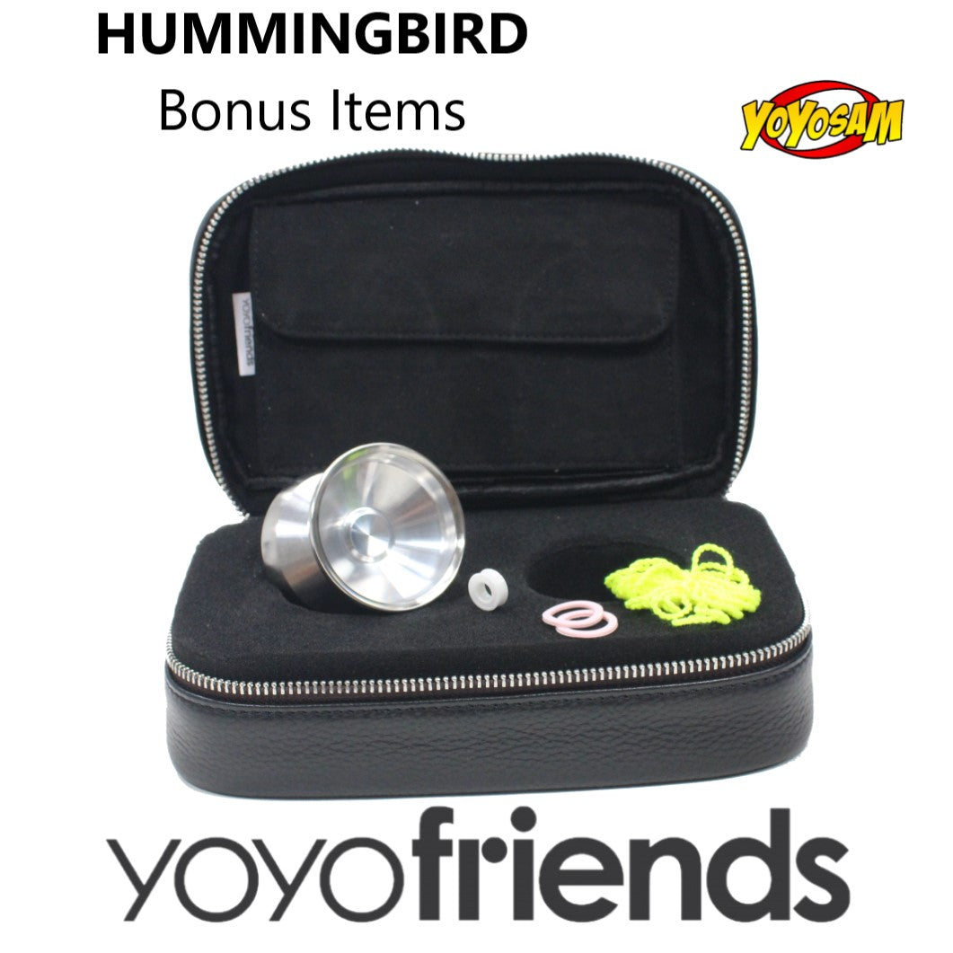 The Hummingbird comes in a genuine leather yoyo bag, with extra string, pads, bearing and custom tag.