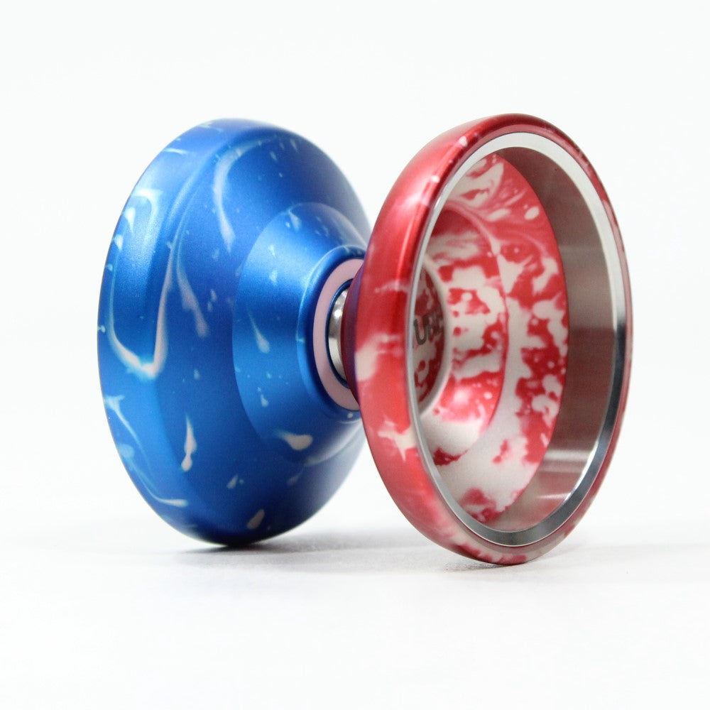 Vulture is another yoyofriends' inner ring bimetal. Vulture features a classic composition of 7068 and stainless steel in a V/H shape that focuses on power, stability and flow. The stainless steel ring weight of Vulture is around 16g, a 50%+ increase from our previous inner ring release. Vulture pushes the limit of performance and weight distribution for an inner ring bimetal. The name is inspired by the striking look of the bird and the classic spiderman villain, which signifies power, strength. maneuverability and precision.