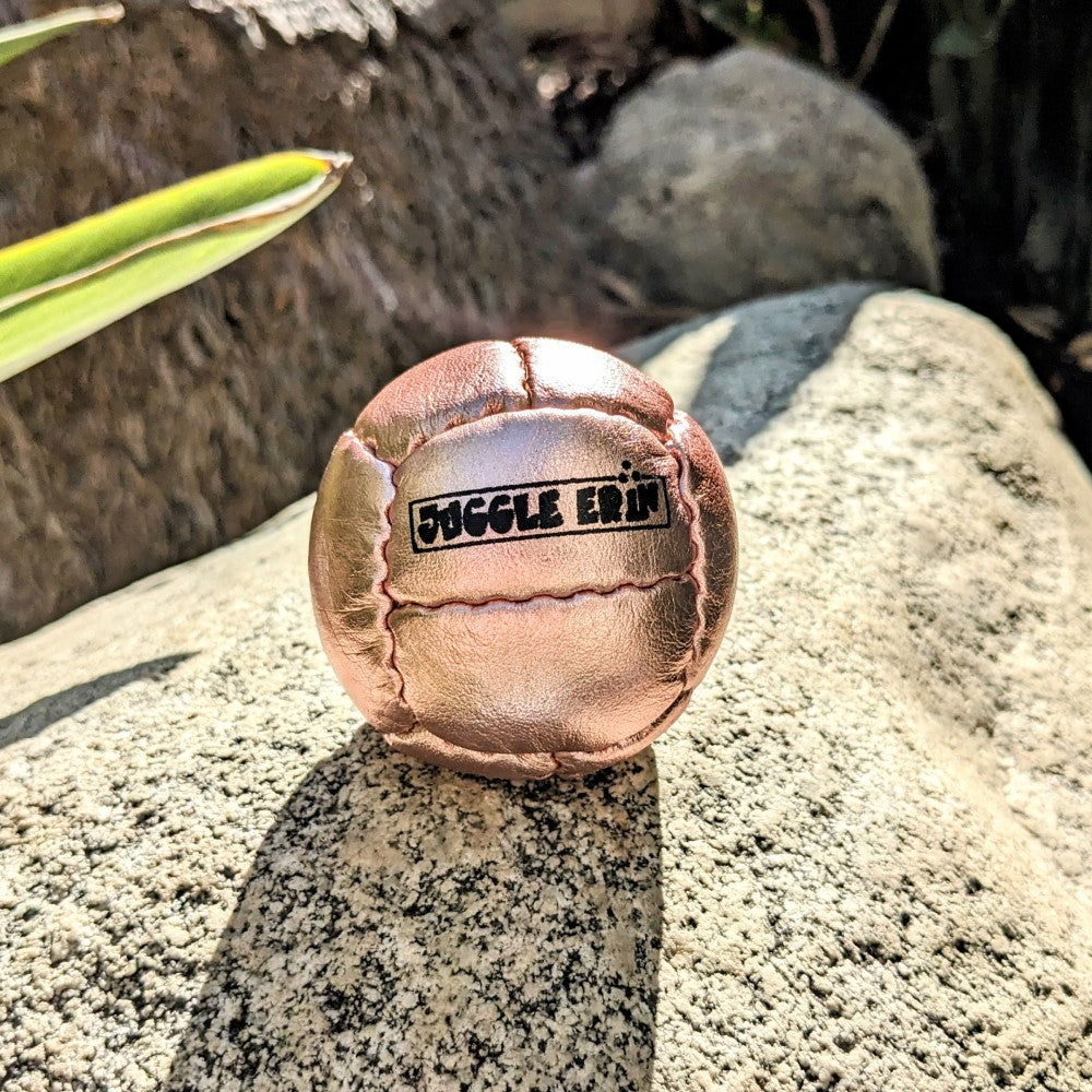 Juggle Erin Juggling Galaxy Ball is the first special edition Galaxy ball. Internet influencer Erin, of JustJugglin has used the Zeekio Galaxy for years. So we got together and created a custom colorway with Juggle Erin Logo on it. The Galaxy is designed to satisfy the requirements of professional jugglers and beginners alike. Hand sewn leather in a 12-panel design with exactly the perfect amount of flexibility.